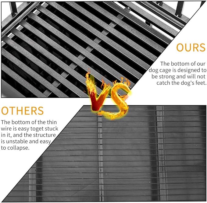 • Heavy duty frame: made from industrial corrosion-resistant steel, indestructible and durable, hard to be damaged, nontoxic finished surface keep your dog health, suitable for most medium and large dogs, two locks with the safety buckles to prevent the high anxiety dogs from opening the door and escaping.
