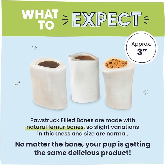 Pawstruck Small 3” Filled Dog Bones Variety Pack - Peanut Butter, Cheese & Bacon, Beef Flavors - Made in USA Long Lasting Stuffed Femur Treat for Aggressive Chewers - Pack of 3 - Packaging May Vary