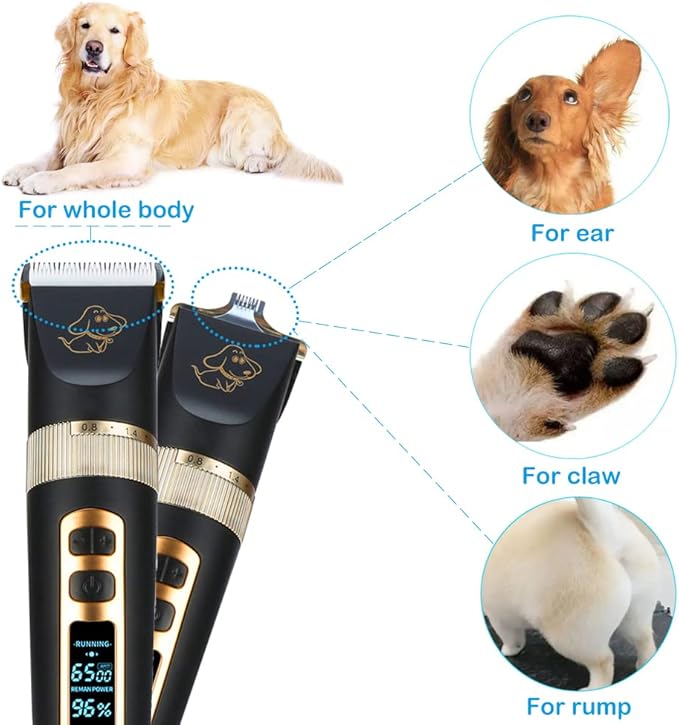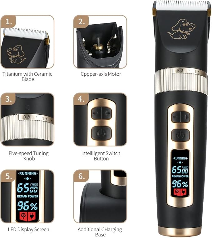 • 【Safe and comfortable】Sharp and Durable titanium blade combining with the ceramic movable blade provides efficient cutting performance but doesn't get too hot, no worry about scalding your pet's skin or pulling your pet's hair, just a safe, easy and comfortable grooming experience!