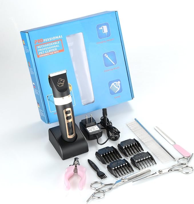 Otstar Professional Dog Grooming kit, 3 Speed Rechargeable Cordless Dog Clippers Low Noise Low Vibration, LED Screen Indicate Power/Lubricating/Cleaning
