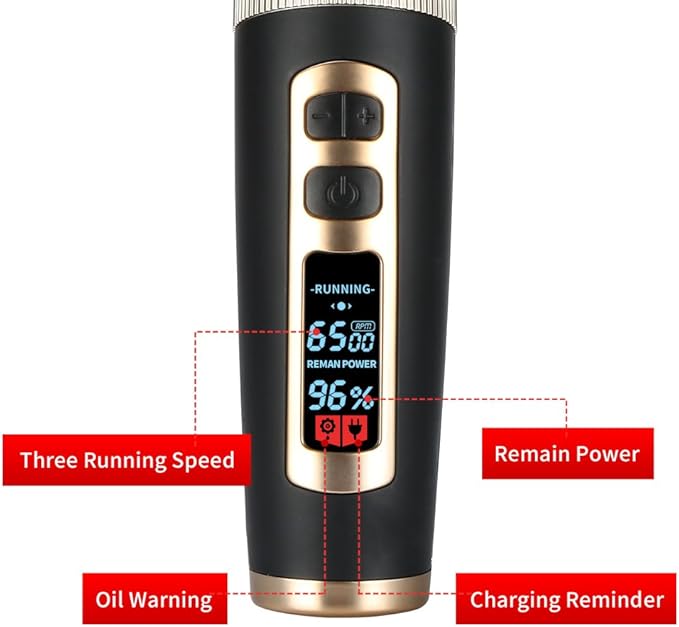 • 【Adjustable speed and LED screen】Three adjustable speeds to suit different types of hair (soft, medium, hard), ideal for beginners! The LED screen will prompt for power, lubrication, and cleaning to ensure the most comfortable grooming experience.