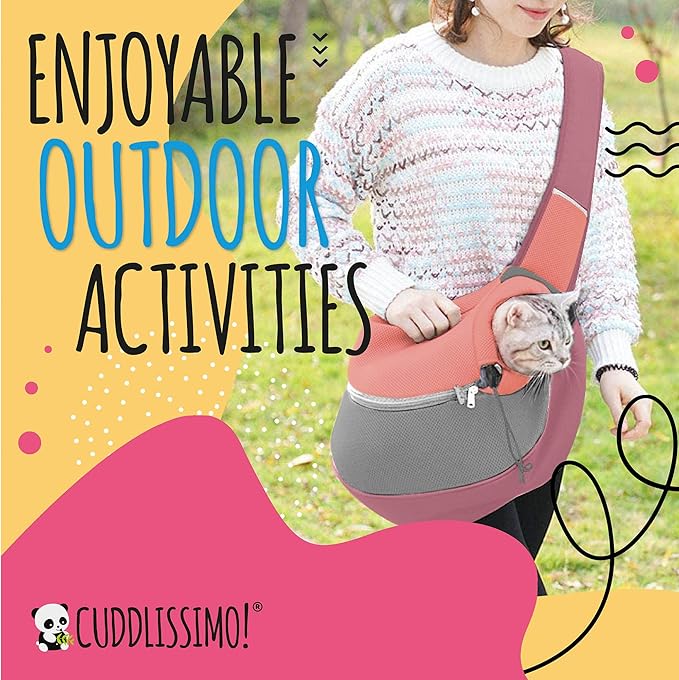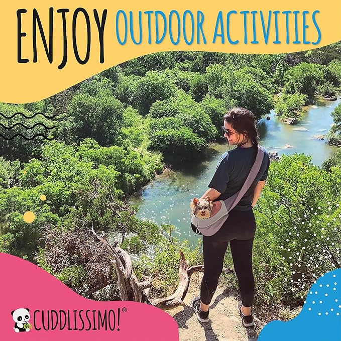 • 🐶 PERFECT FOR SMALL PETS - Cuddlissimo! pet sling carrier is designed for small and teacup dogs or cats, up to 6 pounds in weight. This dog sling has a padded bottom, and the neck opening is fully adjustable.