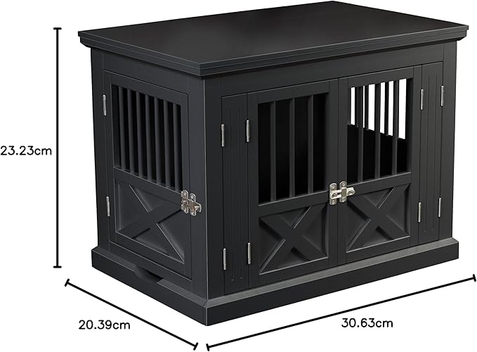 • Double hinged front doors - dog kennel crafted from solid MDF wood with sturdy hinges