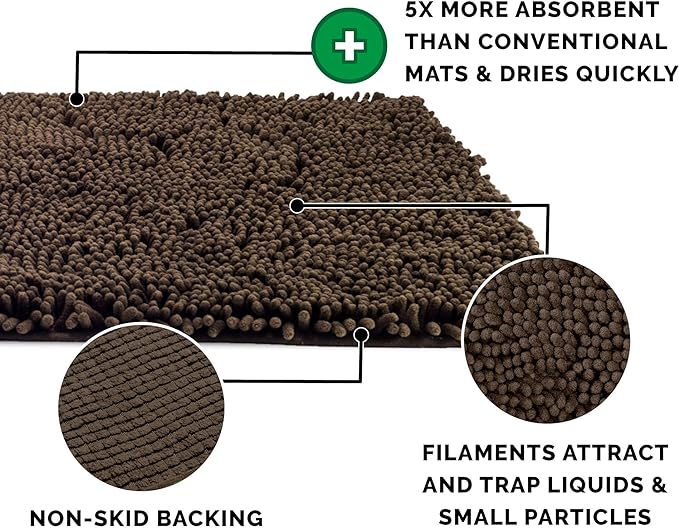 • MULTIPURPOSE: The rug's collection of highly absorbent, cuddly soft microfiber chenille filaments make it an ideal choice for a floor mat, door mat, food mat, sleeping bed mat, and furniture cover; it's also great for toweling off wet and dirty pups