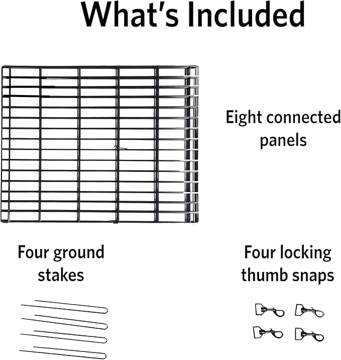 • Easy set-up & no tools required for assembly. Exercise Pen includes 1 year manufacturer's warranty; Not Recommended for Puppies or Dogs That Jump
