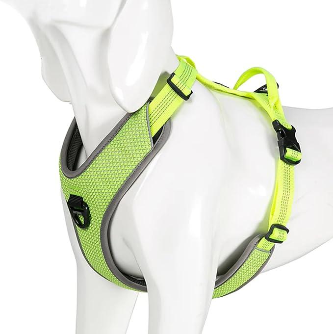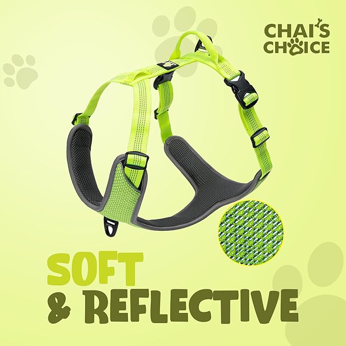 Chai's Choice Dog No Pull Harness Large (Neon Yellow) | Comfortable & Secure Adjustable Strap with Double Leash Clips | No-Choke & Easy Release | 3M Reflective Stripes for Dog Visibility