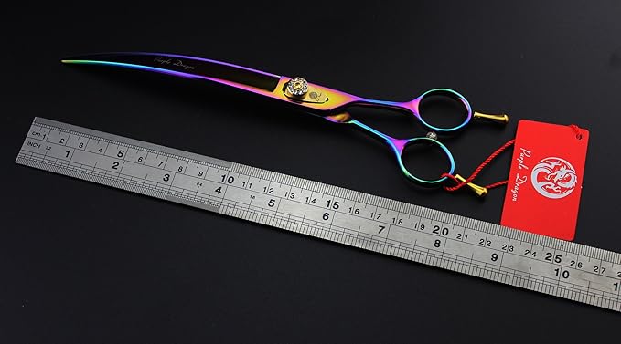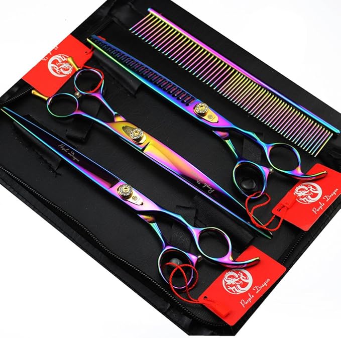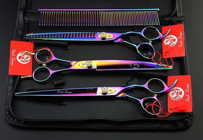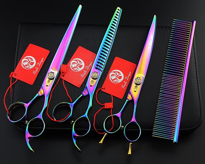 Purple Dragon 7.0"/8.0" 3 in 1 Top-Level Professional Pet Grooming Thinning or Chunker Scissors - Downward Curved Shears and Dog Hair Cutting Scissor - Pet Groomer
