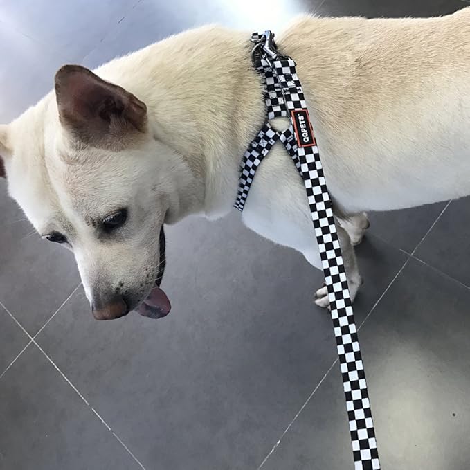 QQPETS Dog Harness Leash Set Adjustable Heavy Duty No Pull Halter Harnesses for Small Medium Large Breed Dogs Back Clip Anti-Twist Perfect for Walking (S(14"-20" Chest Girth), Black Plaid)