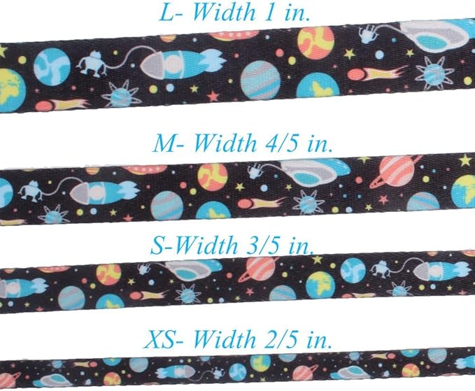 • Width & Length: The width of Leash and harness is the same, XS-3/5”, S-3/5”, M-4/5”, L-1” . The length of the leash is the same, It's a good length at 5 feet, designed for pet parents to enjoy comfortable walks with their dogs and fit for small, medium and large dogs.