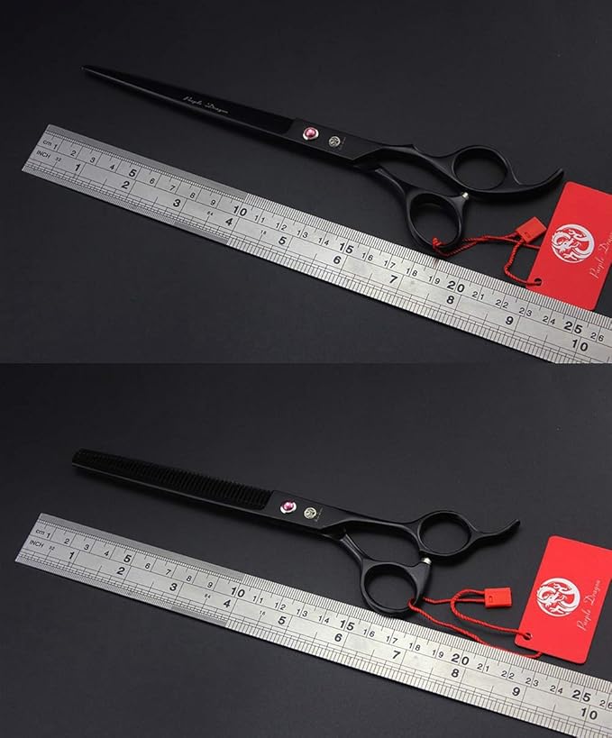 Purple Dragon 8.0 inch Black Professional Pet Grooming Scissors,Dog Straight Shear, Thinning/Blending Scissor & Curved Shear with Bag (Black)