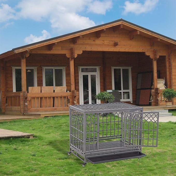• 【Size and Aftersales】 38"L X 26"W X 32"H, Dark Silver.The height of the dog cage with wheels is 31.5 inches, and the internal height is 25.6 inches. Suitable for most large dogs, perfect for indoor and outdoor use. If any quality problem within 3 years, please contact us. We will provide with the most satisfactory solution!