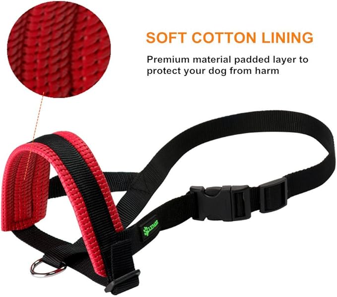 Nylon Dog Muzzle for Small,Medium,Large Dogs Prevent from Biting,Barking and Chewing,Adjustable Loop(XXL/Red)
