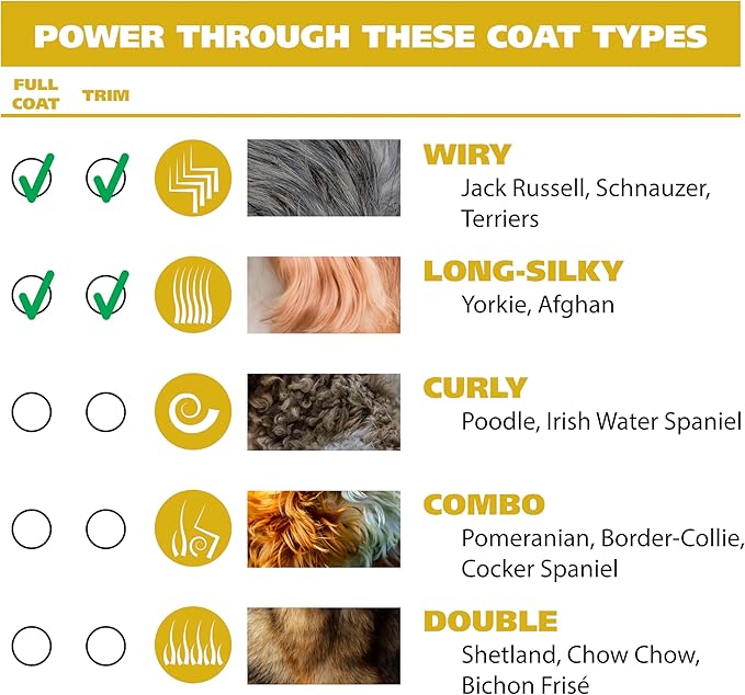 • Self-Sharpening Precision Blades – Provide snag-free cutting, our high-carbon blades remain sharp for smooth grooming that creates a pleasant experience for your pet; Pro quality at home means less trips to the professional dog groomer