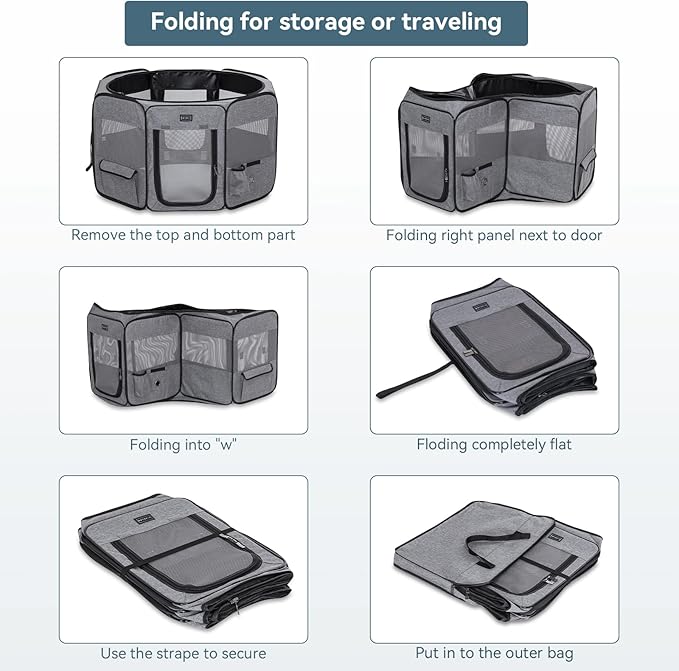 • Various Settings: Ideal for Indoor, puppy training, outdoor gatherings, camping, vet visits, pet-friendly events, home renovations, and travel stops. This playpen ensures a secure and comfortable space for pets, keeping them safe in any situation