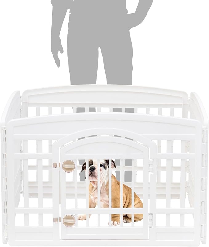 IRIS USA 24" 4-Panel Dog Playpen with Door, 35 x 35 x 24, Puppy Playpen, Dog Play Pen Indoors, Pet Fence, Small Pets, White