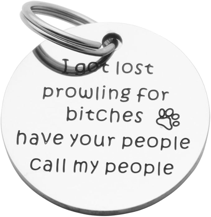 Funny Pet Tag Stainless Steel Pet Tags Dog Tag for Collar Puppy Tag (I Got Lost Prowling for Bitches Have Your People Call My People)