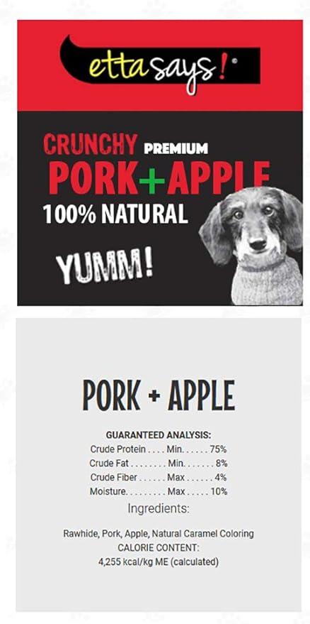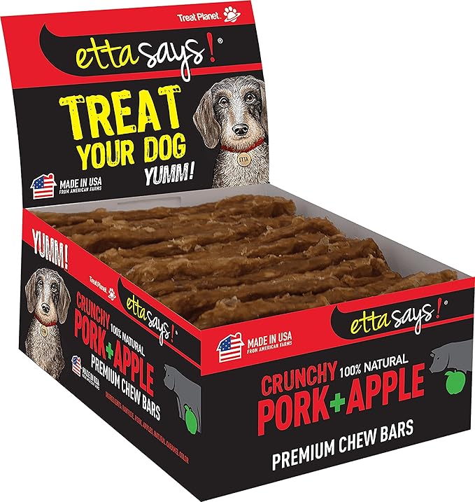 etta says! Premium Crunchy Chew Bars - All Natural - Pork + Apple - Made in The USA (12 Count Pack of 1)