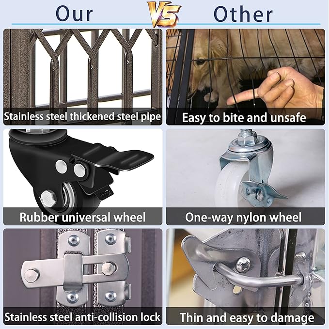 • 【Size and Aftersales】38"L X 26"W X 32"H, Brown. The height of the dog cage with wheels is 32 inches, and the internal height is 25.5 inches. Suitable for most medium and large dogs, perfect for indoor and outdoor use. If any quality problem within 3 years, please contact us. We will provide with the most satisfactory solution!