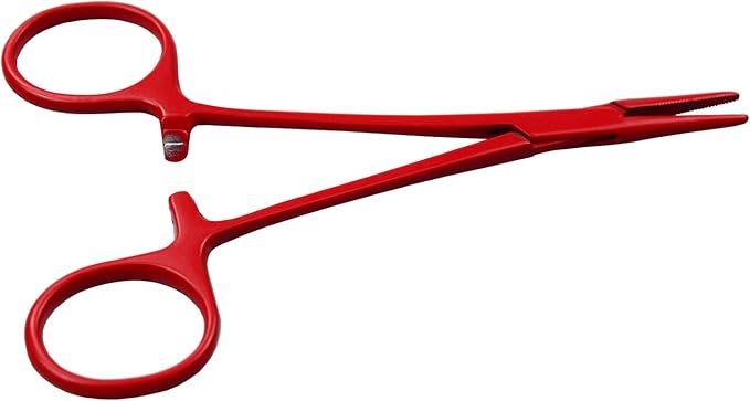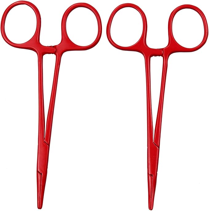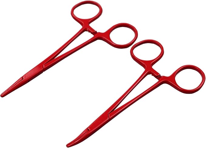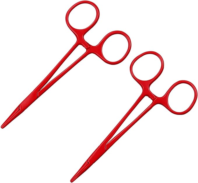 Pet Colourful Stainless Steel Hemostat Hemostatic Forcep,Pet Ear Hair Pull Forcep,Bend Head and Straight Head kit (Red)