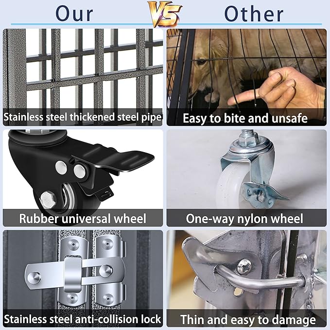 • 【Escape Proof Design】The special Y-pattern design of the heavy duty dog crate makes a beautiful and bite-proof shape to effectively prevent the dog's mouth from sticking out. THREE locks with the safety buckles to prevent the dogs from escaping.