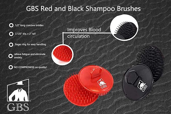 • PACKING- 6 G.B.S Stylish Hair Scalp Brush Scrubber in a package 3 Black, 6 Red. Please email us. We will deal with your questions carefully if you have any questions. We promise to provide high-quality products and friendly services, and hope to bring you a comfortable experience every time you use our products. Our Tools are used by professionals Barbers across the Whole USA.