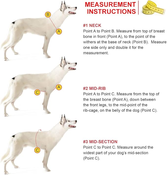 • FOUR SIZES, adjustable at the Neck and Girth. For a proper fit, it is IMPERATIVE that you measure your dog per the Measuring Instructions provided, then select proper size from the Size Chart. Sizes - SMALL: Girth 18 - 24 inches, Weight 15 - 35 lbs. MEDIUM: Girth 24 - 29 inches, Weight 35 - 55 lbs. LARGE: Girth 28 - 33 inches, Weight 55 - 85 lbs. EXTRA LARGE: Girth 31 - 36 inches. Weight 85 - 105 lbs.
