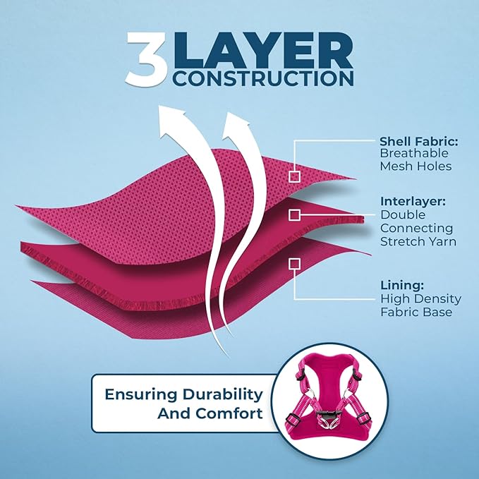 • REFLECTIVE WEBBING: 3M Scotchlite reflective material on the straps of this dog harness enhance your dog’s visibility during those early morning and late evening strolls.