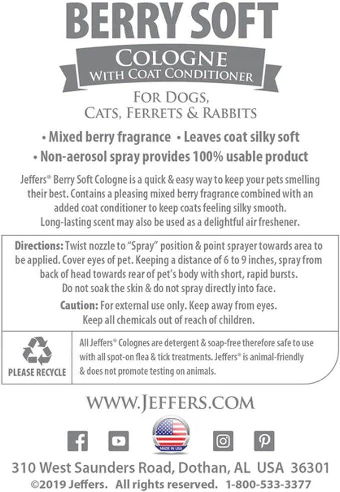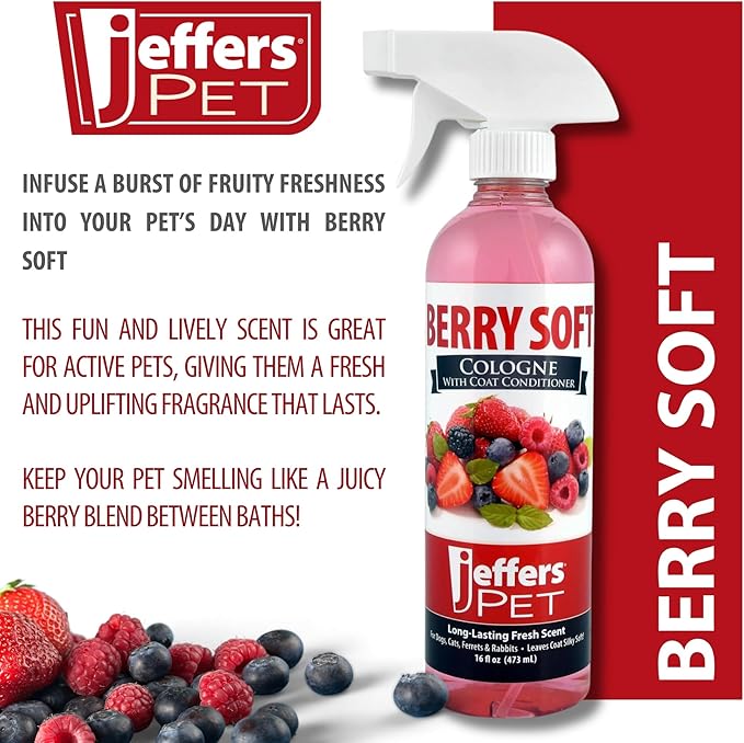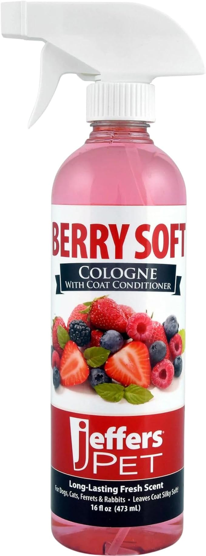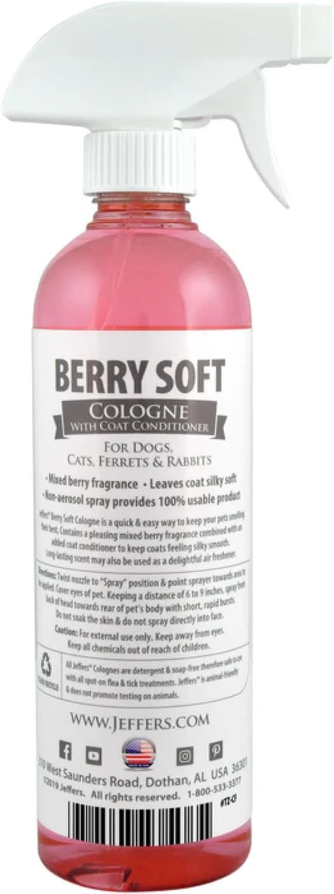 Jeffers Pet Cologne for Dogs, Cats, Rabbits & Ferrets, Berry Soft 16oz – Soap-Free, Conditioner for Silky Coats, Safe & Fresh Fragrance, Deodorizing Spray for Pets, Grooming Essentials