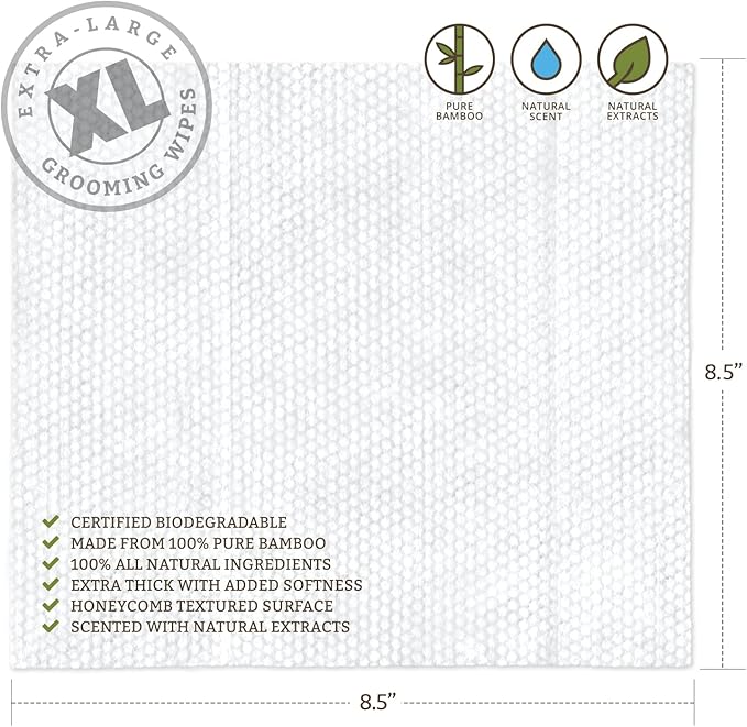 • TOP RATED DOG WIPES! - Compostable, Made from Pure Bamboo & All Natural Extracts. 60 Count - Pet Grooming Wipes - Extra-Large (8.5 x 8.5 inches) Vegan & Cruelty Free.