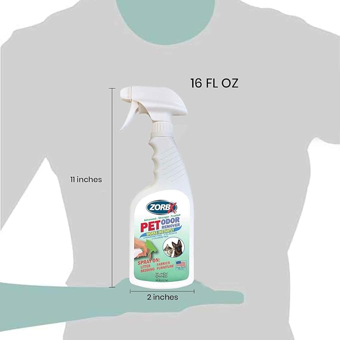 ZORBX Unscented Pet Odor Remover Spray 16 FL Oz - Perfume Free Strong Litter Odor Remover - Advanced Odor Control for Carpet, Bathroom & Urine Odors - Fast Acting Odor Remover Spray for Dogs & Cats