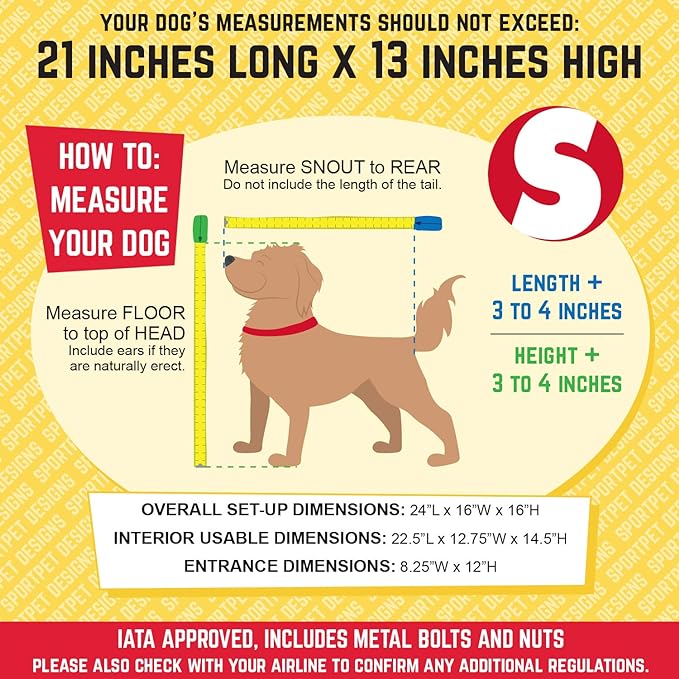 • Your dog's measurements should be under 21" L x 13" H for small kennel