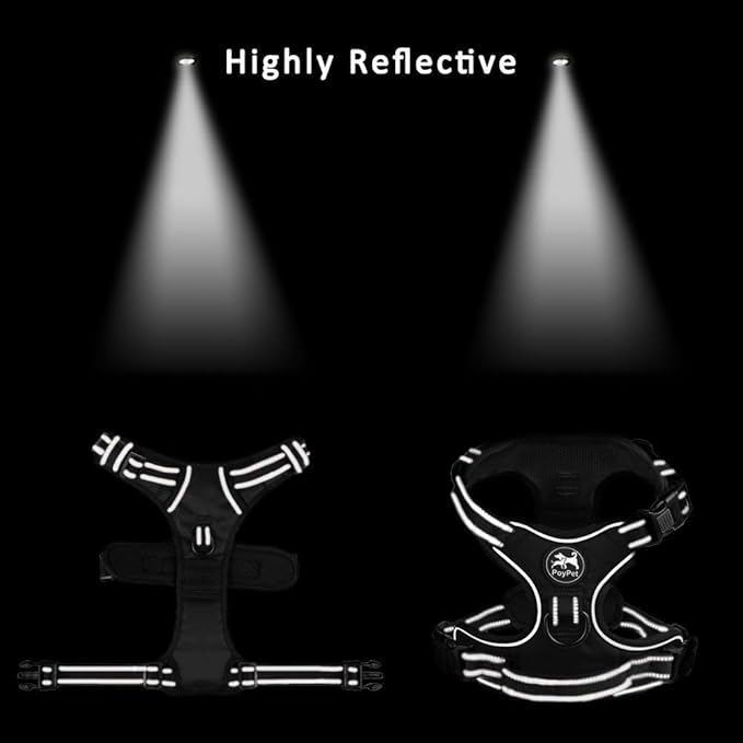 • NO PULL AND CHOKE FREE: Our front lead dog harness has two sturdy metal leash attachment points with reinforced webbing, front clip for discouraging pulling and back for relaxed walks. The pet harness is soft breathable non-toxic mesh padded, pulling pressure is evenly distributed to the body to prevent Choking.