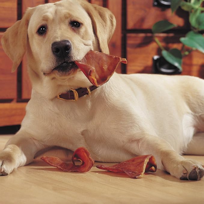 • 🐷 WANT TO KEEP YOUR DOGGY HAPPY? Our thick cut, oven baked and slow-cooked pig ears for dogs preserve that dog-approved delicious, meaty and rich flavor without any additives, hormones or antibiotics.