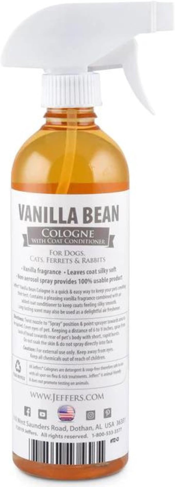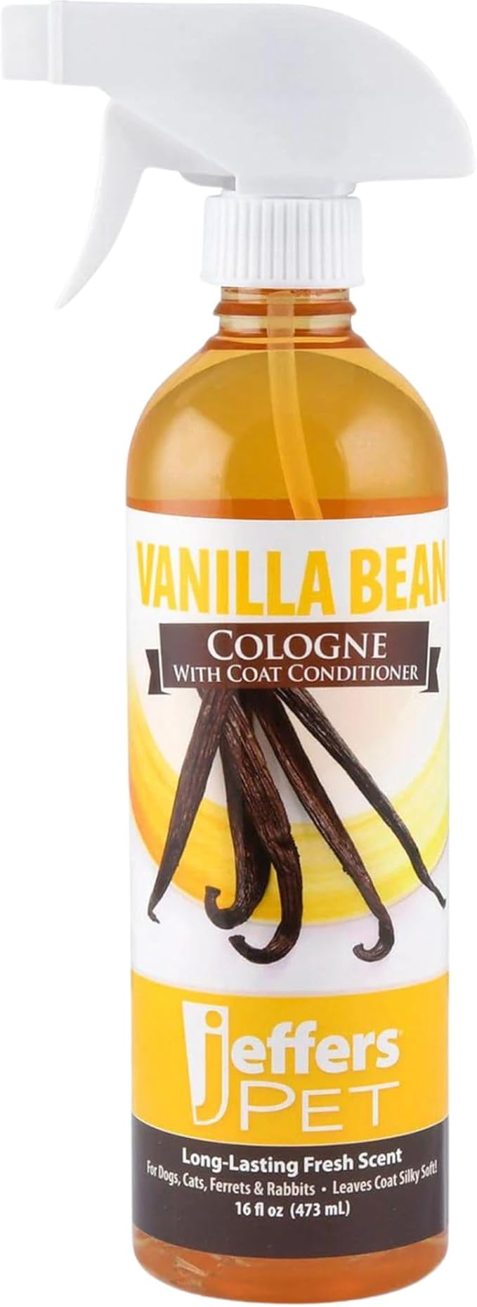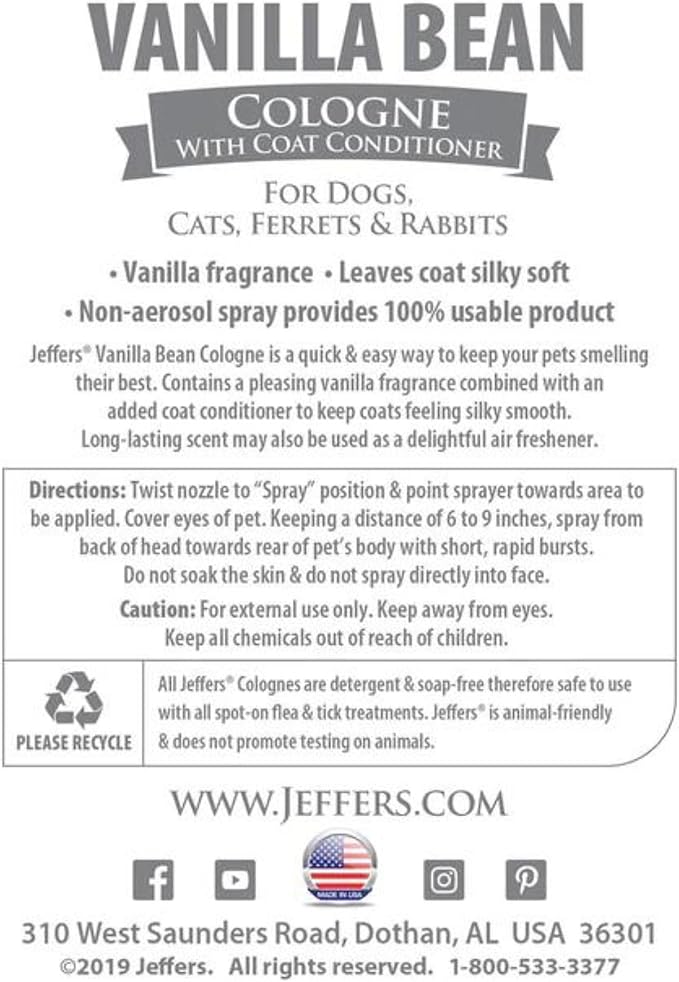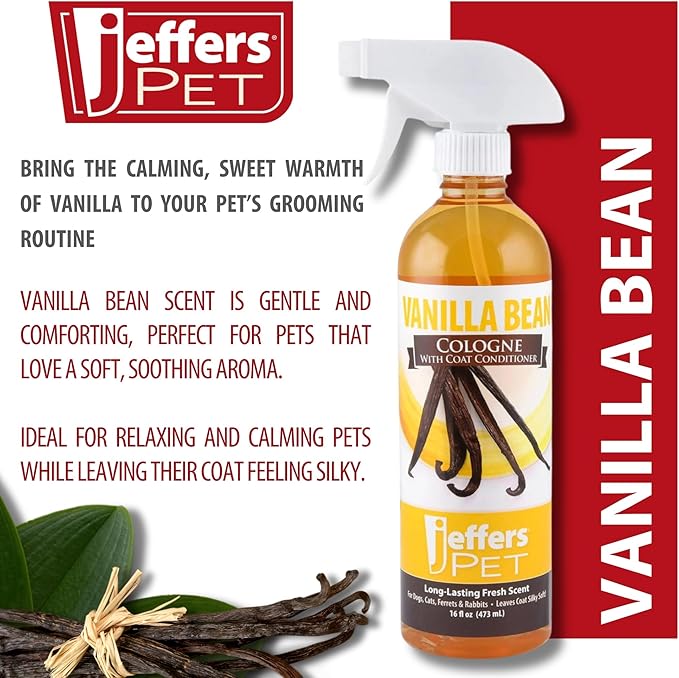 Jeffers Pet Cologne for Dogs, Cats, Rabbits & Ferrets, Vanila Bean 16oz – Soap-Free, Conditioner for Silky Coats, Safe & Fresh Fragrance, Deodorizing Spray for Pets, Grooming Essentials