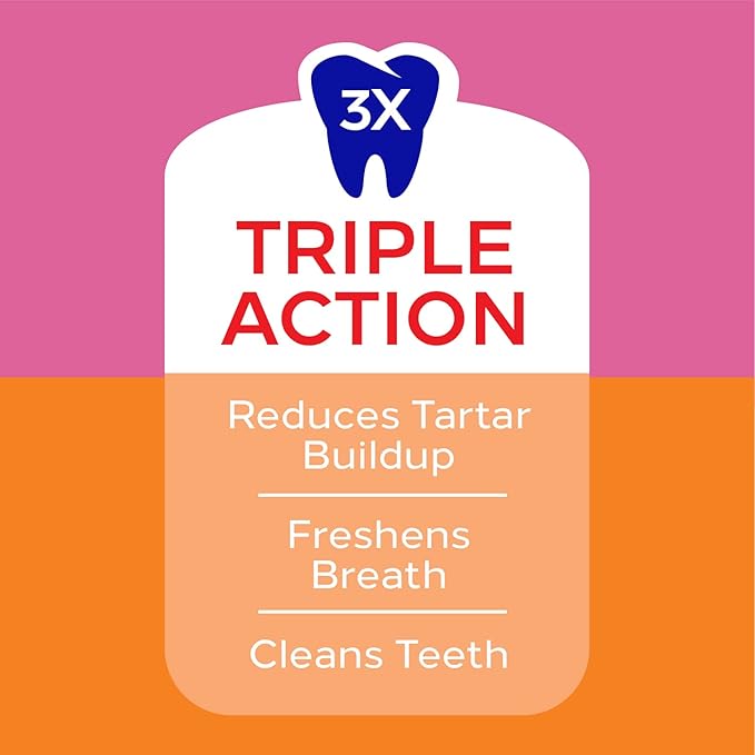• PEDIGREE DENTASTIX Triple Action acts as a dog breath freshener that works to clean teeth and freshen breath, and has a clinically proven texture that reduces plaque and tartar buildup