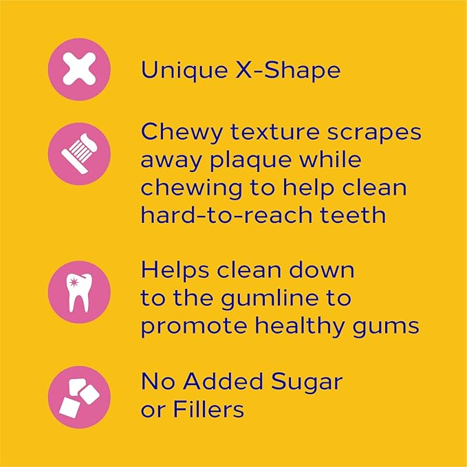 • Our dental treat sticks have a unique X-shape design and are specially designed dog treats for large breed dogs, weighing over 40+ lbs.
