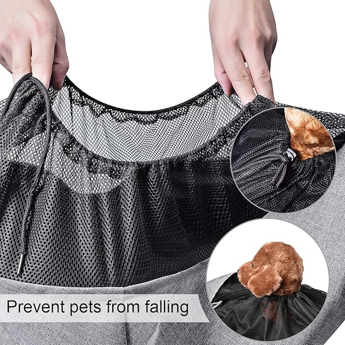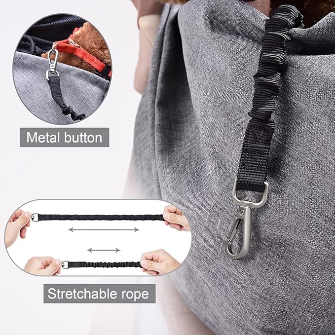 • SAFE: If your pet gets bored and decides to jump out of it, the collar clip and air mesh could prevent the pet from falling. The metal clip is attached to a sturdy and elastic string, make sure clip it to the collar or harness before moving. Black air mesh is breathable and soft, your pets would not hate it.