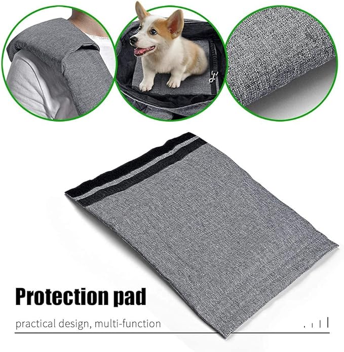 • PAD: It could be a shoulder pad or a cushion for pets. The strap is soft and wide, which can evenly distribute the weight to your whole body. The pad also provides extra structural support for the four-leg kid if you put it at the bottom of the bag, they feel much better when sit or stand on this flat and soft cushion.