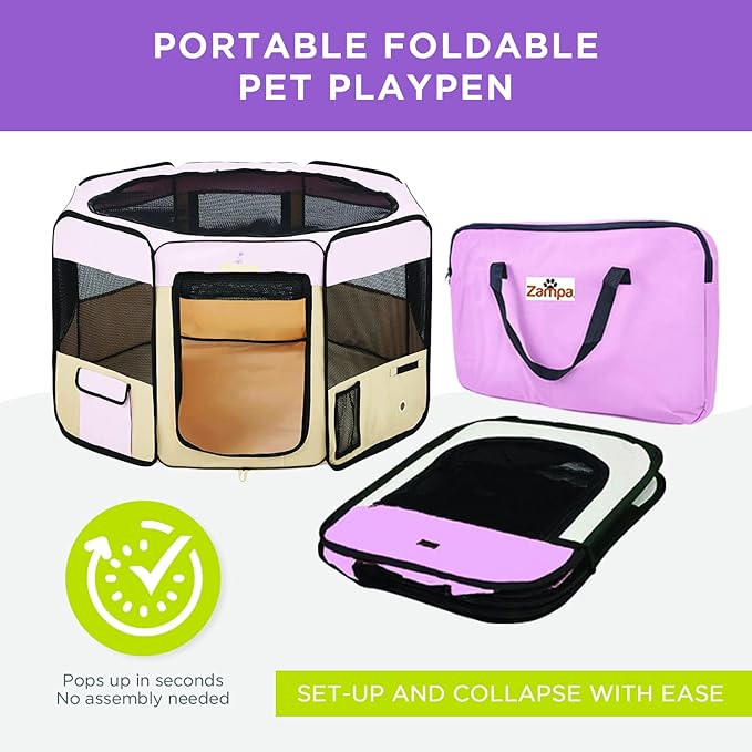 Zampa Puppy Playpen Small 36"x36"x24" Portable Pop Up Playpen for Dog and Cat, Foldable | Indoor/Outdoor Kitten Pen & Travel Pet Carrier + Carrying Case.