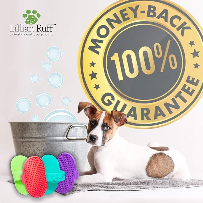 Lillian Ruff Dog Bath Brush - 2 Pack of Flexible Rubber Dog Shower Brush with Adjustable Strap - Soothing Massage Bristles Produce more Lather, Reduce Bath Time, Remove More Dirt & Loose Hair (Green)