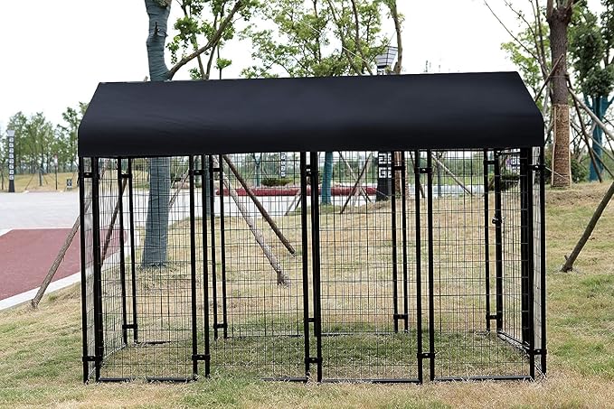 Amazon Basics - Welded Rectangular Outdoor Secure Wire Crate Kennel for Cat, Dog Large, Black, 102 x 48 x 72 inches