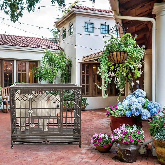 • 【Size and aftersales】42"L X 31"W X 37"H, Brown. The height of the dog cage with wheels is 37 inches, and the internal height is 30.7 inches. Suitable for most medium and large dogs, perfect for indoor and outdoor use. If any quality problem within 3 years, please contact us. We will provide with the most satisfactory solution!