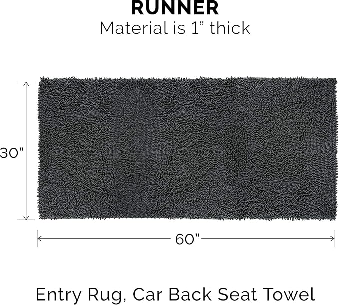 Furhaven 60" x 30" Highly Absorbent Runner Door Mat for Muddy Paws, 100% Washable, Perfect for Entryway, Kitchen, & Bathroom Use - Chenille Shammy Rug - Charcoal (Gray), Runner/XXL