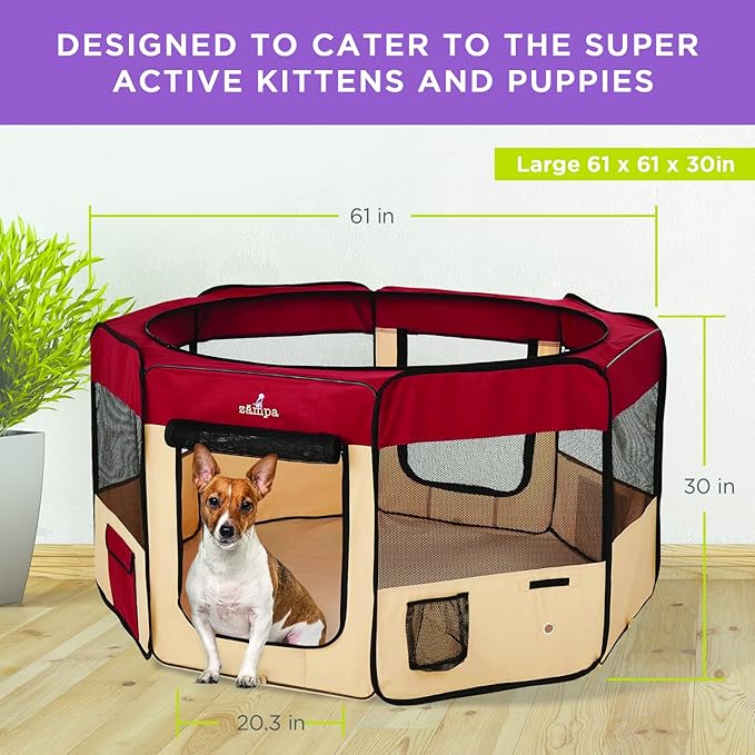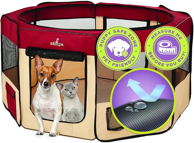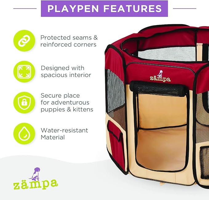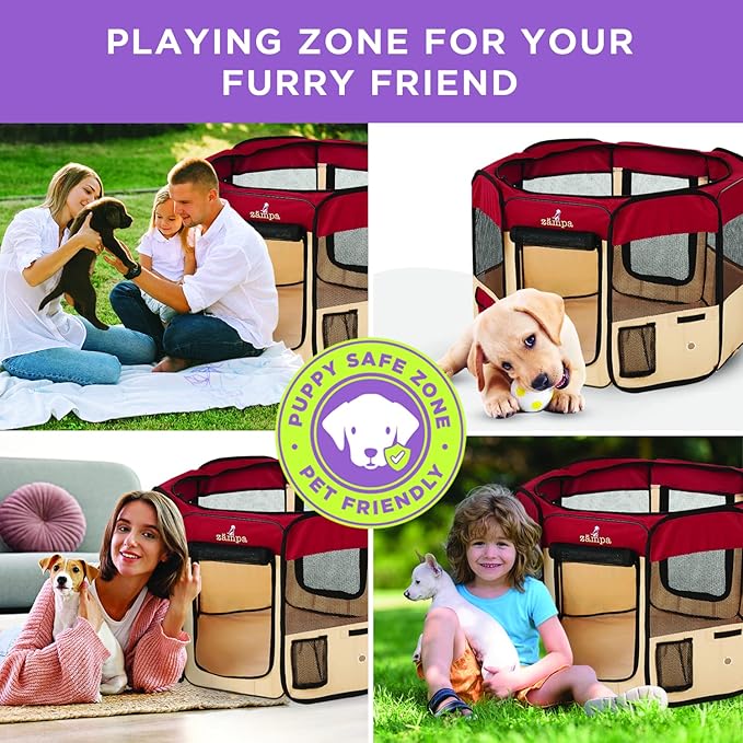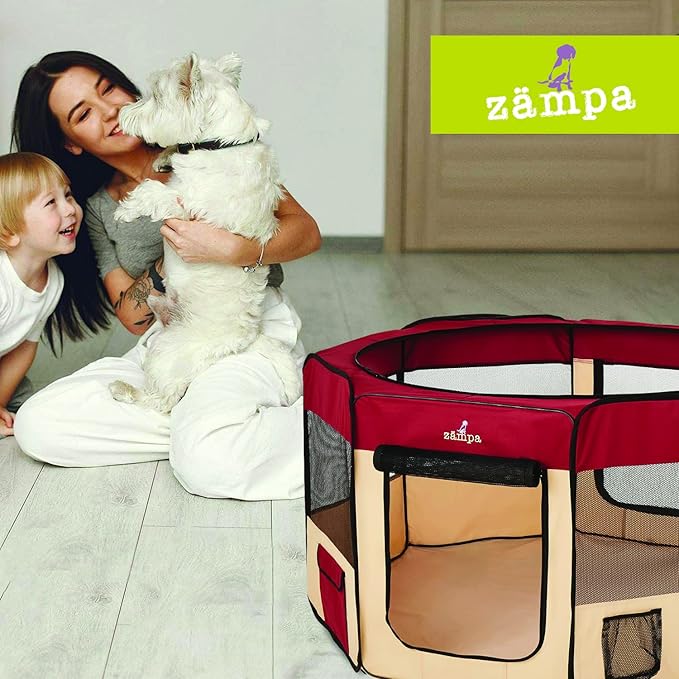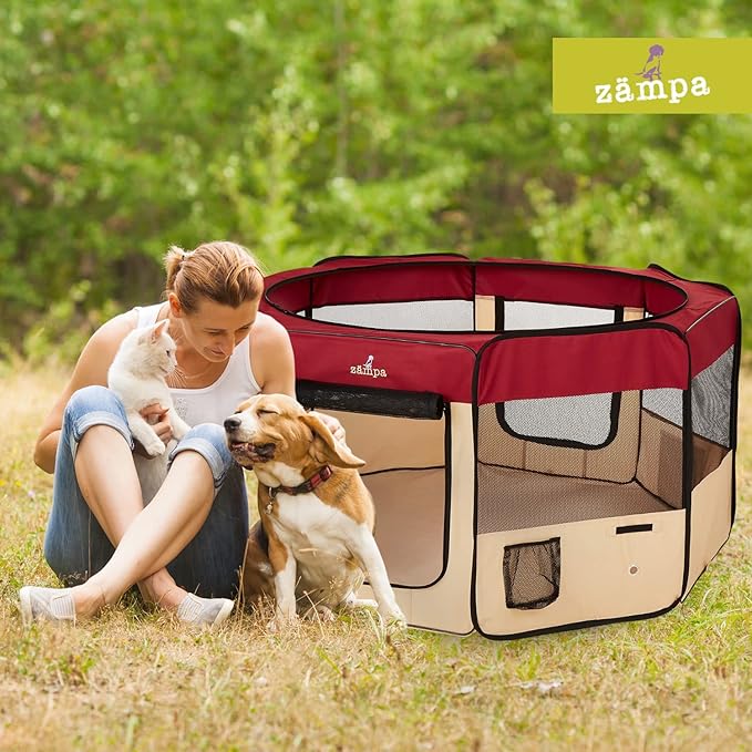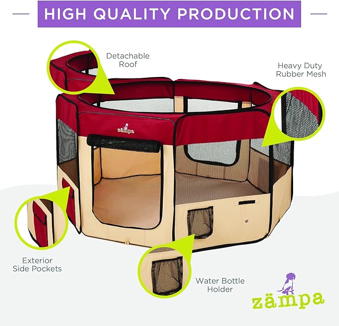 • What To Expect From Zampa: Playpen, mesh top to zip on when needed, 4 metal spikes for outdoor safety, carrying case, and a commitment from our customer service team. Please don't hesitate to contact our customer service and BARK, we will make it right.