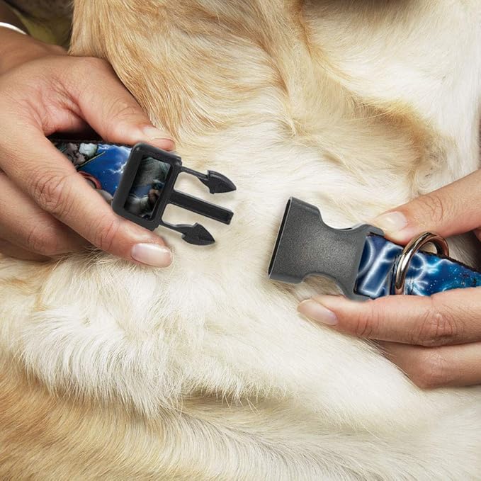 Dog Collar Plastic Clip Avengers Thor Hammer Action Pose Galaxy Blues White 13 to 18 Inches 1.5 Inch Wide