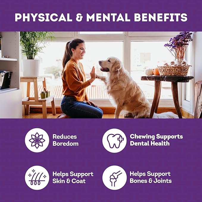 • PROMOTES DENTAL HEALTH: Chewing on rawhide helps improve teeth and gum health by scraping plaque off your dog's teeth and preventing tartar build-up