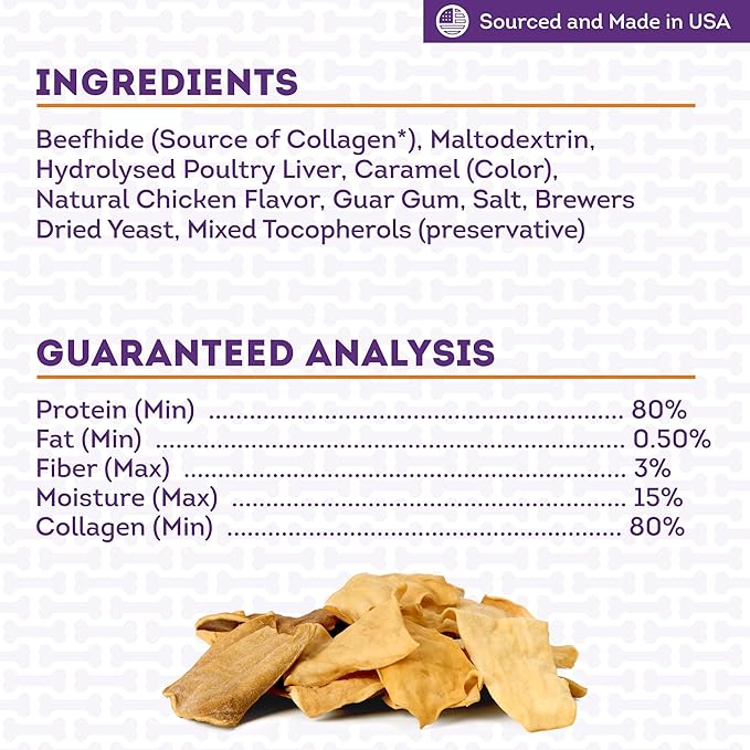 • MADE IN USA: Our collagen chews are made from the all-natural collagen layer of American-sourced beefhide; they are crafted and processed in the USA for maximum quality and safety, and contain no dangerous additives or preservatives