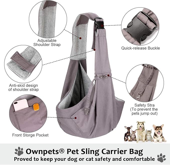 OWNPETS Pet Sling Carrier, Pet Sling Carrier Bag Safe,Fit 10~15lb Cats&Dogs, Comfortable, Adjustable, Perfect for Daily Walk, Outdoor Activity and Weekend Adventure