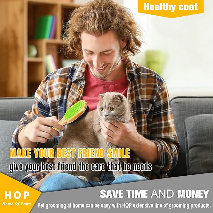• Two sided pet brush two in one dog hair brush. One side of the silicone head is used for hair removal and massage. The side of the brush can remove loose hair and debris on the surface. It is suitable for cats or dogs of all types and sizes. The affordable pet comb can help you save the cost of your pet and reduce the time you spend cleaning your pet.