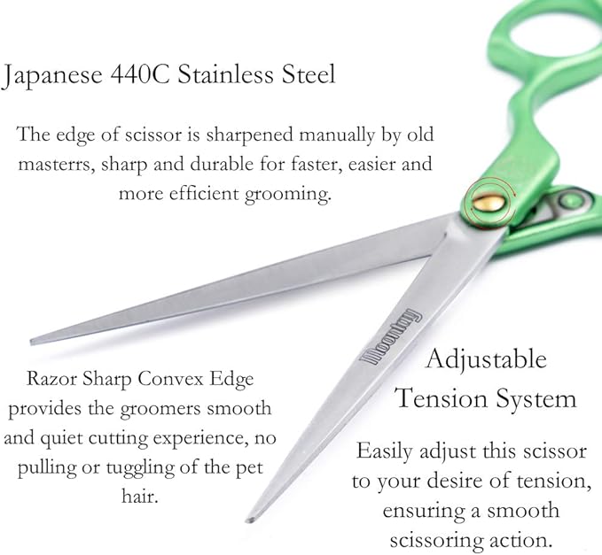 Moontay 6.0" Professional Straight Pet Grooming Scissor, Dog Cat Grooming Shear/Scissor with Ultra-Light Aeronautical Aluminum Handle, 440C Japanese Stainless Steel Pet Grooming Shear, Green